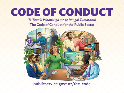 Te Tauākī Whanonga mō te Rāngai Tūmatanui | The Code of Conduct for the Public Sector provides public servants with a shared foundation and a collective commitment to acting with integrity.